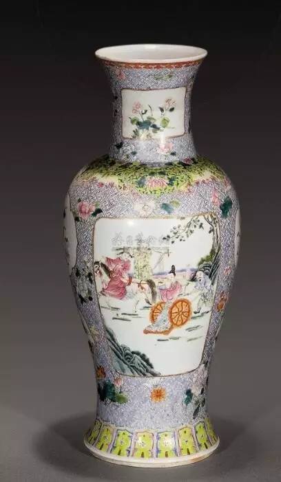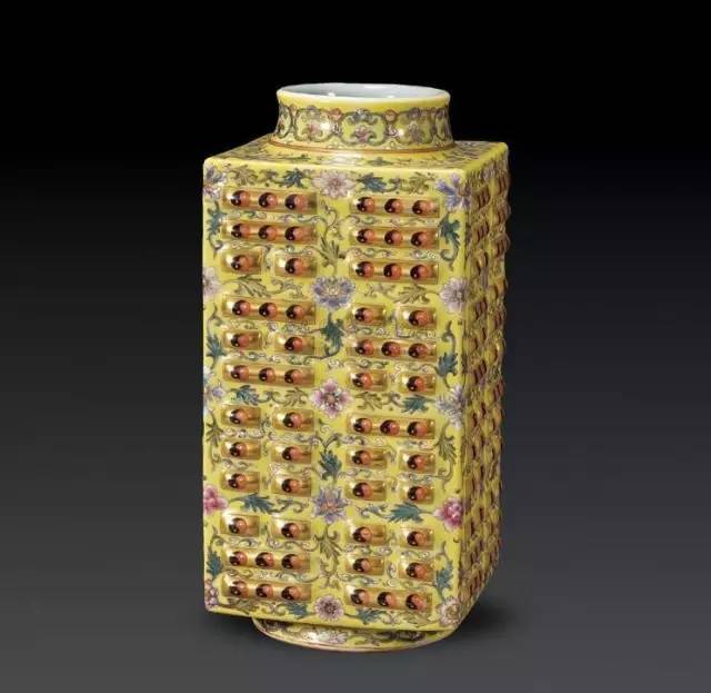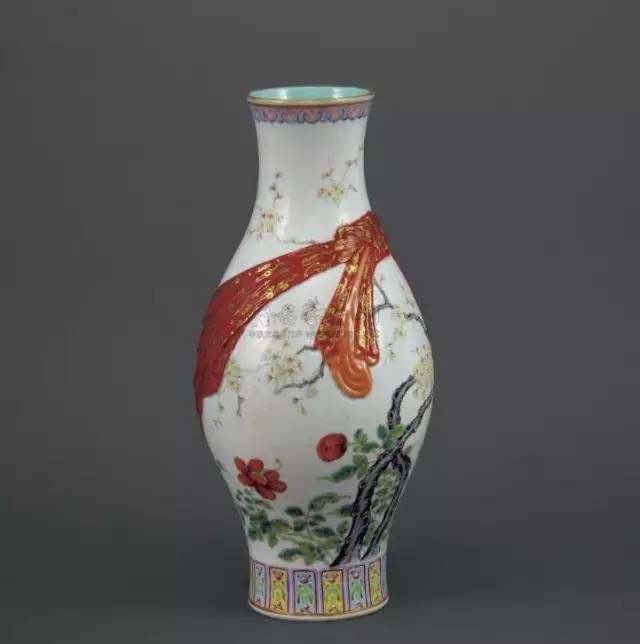 又称甘露瓶,是清朝廷为西藏僧侣烧制的用于插草供佛的特别器皿,故称藏草瓶。雍正时已有烧制,乾隆时期制品为圆唇口,直颈有凸弦纹,丰肩,腹下部渐收,束胫,足部外撇。这类瓶式不书款识,一般多认作乾隆制品。