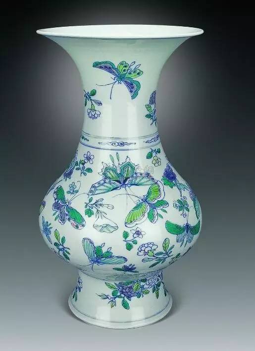 喇叭状口,长颈,鼓腹,下敛,至底又广,形状略似凤尾,故名。清代康熙景德镇窑创制,产品多为民窑,品种有青花、五彩等。