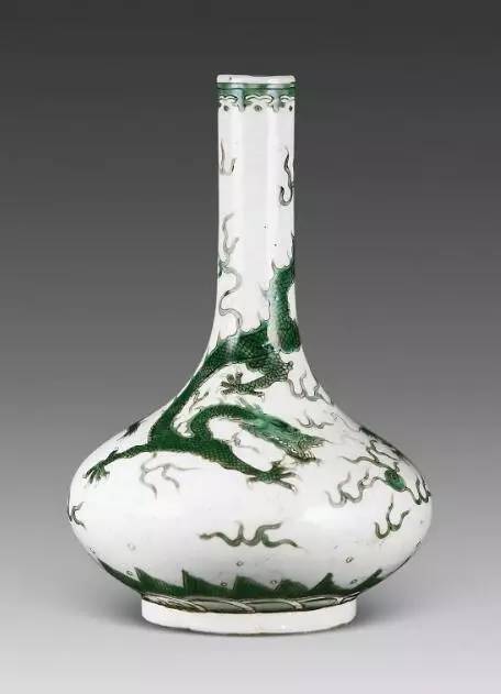长颈,溜肩,垂腹,形若悬垂的动物胆囊。造型近似锥把瓶,不同之处在于颈部较为短粗。始见于明万历朝,流行于清代。