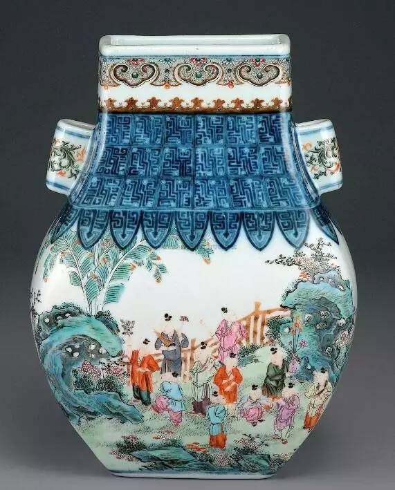 民国青花百花不露地粉彩海屋添筹纹贯耳瓶