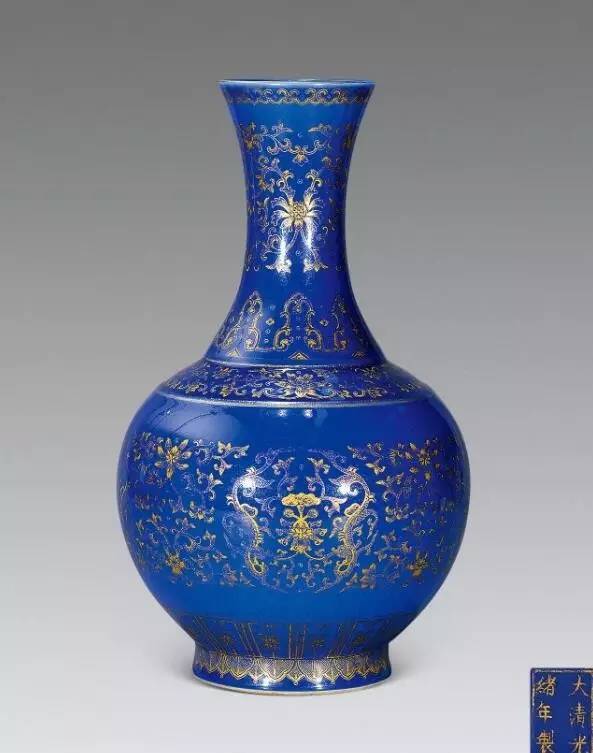 清光绪祭蓝釉描金缠枝花卉赏瓶