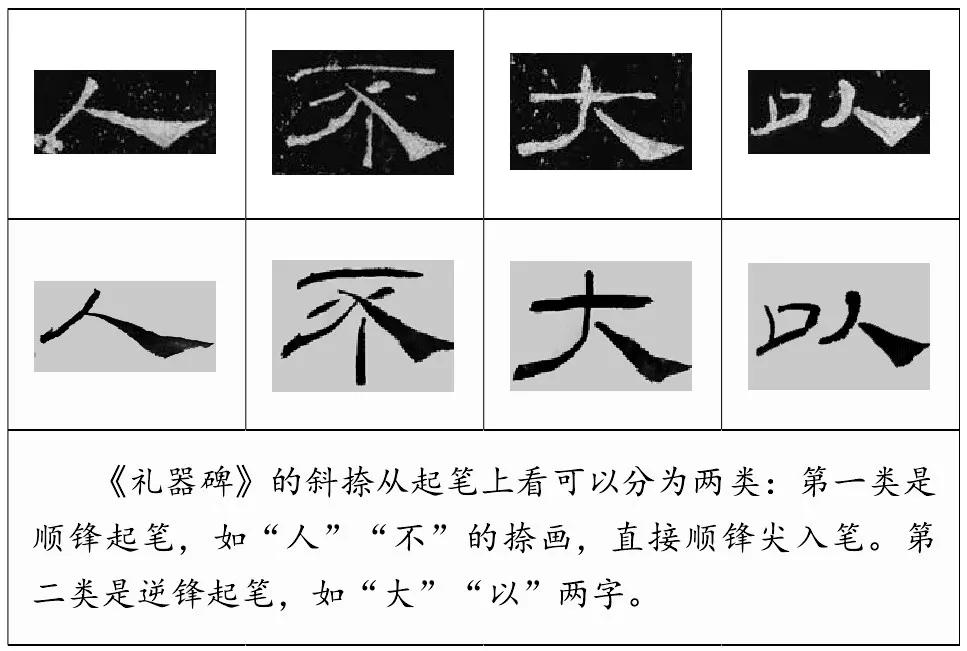 《礼器碑》的捺画按其斜度可分为斜捺和平捺两种。