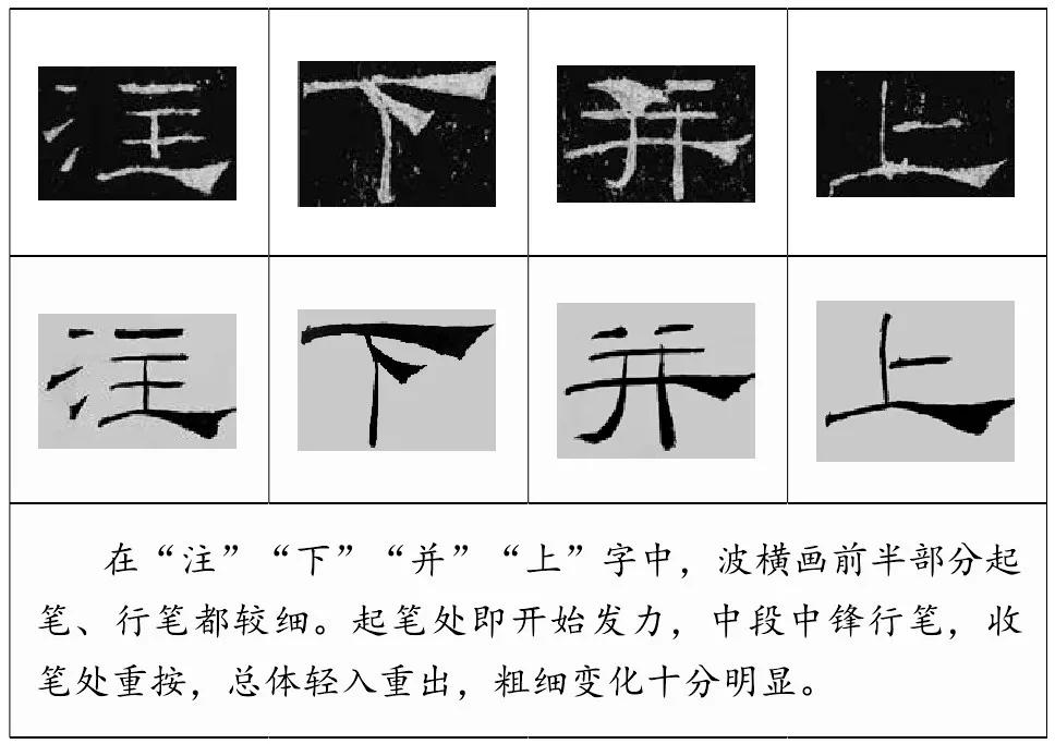 横画是隶书中最具有代表性的笔画,可以分为平横和波横。