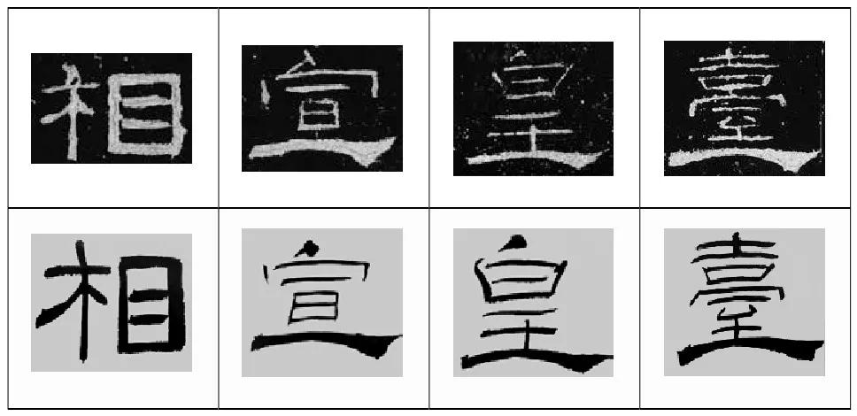 《礼器碑》中粗细的对比不仅存在于单个的笔画之中,在很多单字中,笔画间的粗细变化也很明显,粗笔画往往是细笔画的两三倍,粗细变化形成鲜明的对比,有着强烈的视觉冲击力。