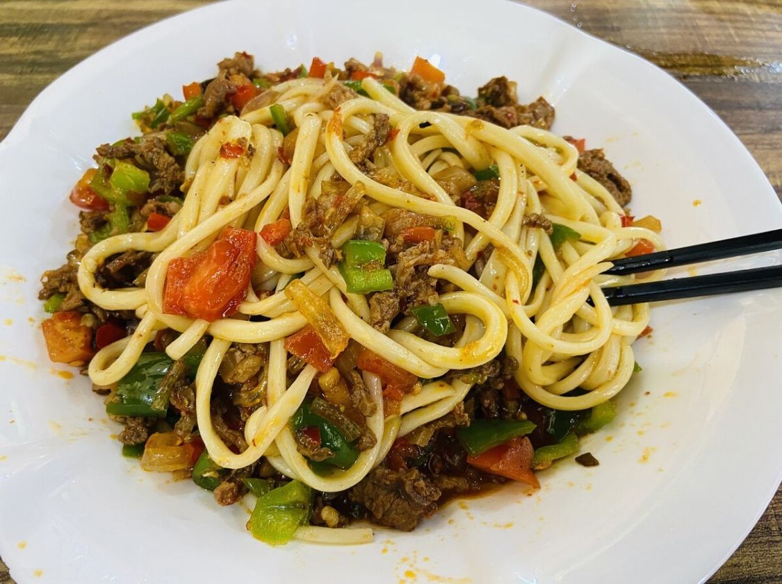 新疆拌面就是人们常说的新疆拉条子,在制作时不用擀、压手法,而是面团和好后直接用手拉,面条筋道有嚼劲。俗话说“新疆主食有三宝,烤馕抓饭拉条子”,其中烤馕朴实,抓饭厚实,而拉条子则风情万种,既可以搭配碎肉、野蘑菇,又可与小炒菜、大盘鸡相搭,真是无所不包,不过最地道还是要属过油肉拌面,那吃着真叫一个过瘾。