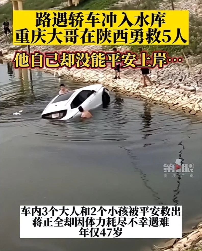 据重庆广电-第1眼报道,8月8日,陕西西安阎良区,一辆小车落入水库,重庆在陕务工男子蒋正全途经此处,与同行二人奋不顾身入水施救。车内三个大人和两个小孩被成功救起,但蒋正全因体力耗尽不幸遇难。年仅47岁。
