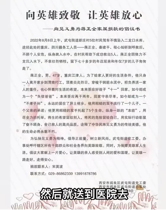 舍己救人该事件,见义勇为真好汉。牺牲之后感