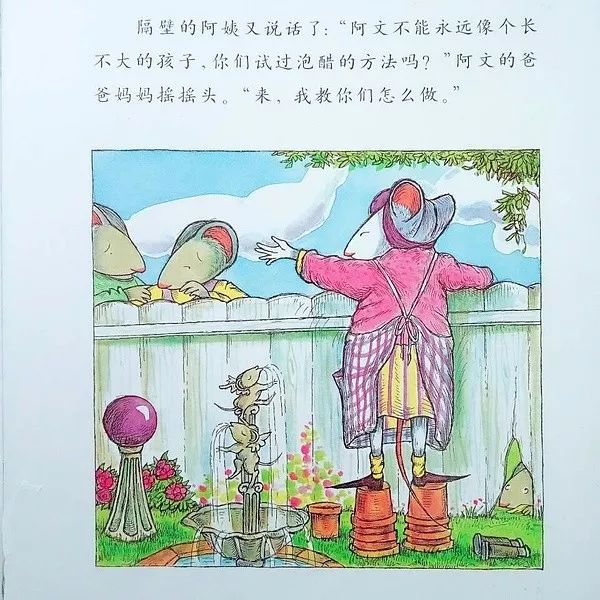 隔壁的阿姨又说话了:"阿文不能永远像个长不大的孩子,你们试过泡醋的方法吗?"阿文的爸爸妈妈摇摇头。"来,我教你们怎么做。"