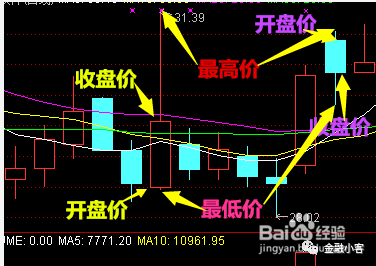 注意看,实体上方那条细细地线看见没,看不见拿放大镜看 ,在实体上方的就叫上影线,(有同学会问,上面没有呢:秃头蜡烛线),线在实体下方也就是下影线,同样如果也没出头,就是秃脚蜡烛线。实体部分代表了实质性的运动价格。