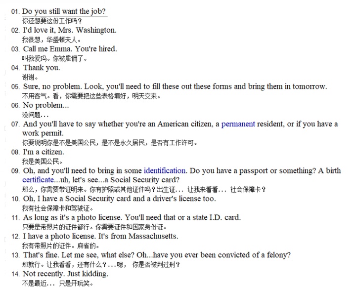 内容:纵横美国第16段第3级57-59+第17段第一级01-14口语练习+口述