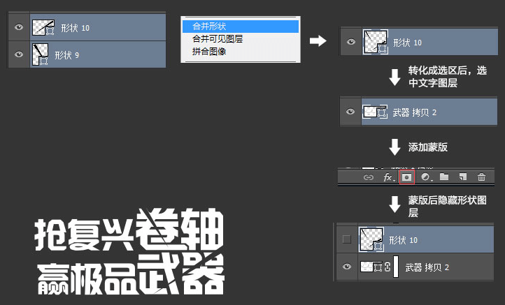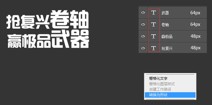 调整完成后,选中字体图层,右键选择“合并形状”,把4个字体形状图层合并成一个。