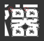 如果觉得效果还不够,可以用“直接选择工具”对需要调整的地方进行拖动,比如对“器”字的边角进行调整,选中锚点向左移动即可以。同理可以调整其他。