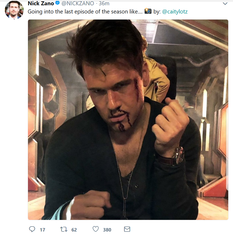 明日传奇Legends Of Tomorrow-的演员Nick Zano上传了一张季终集拍摄现场照,从照片背景