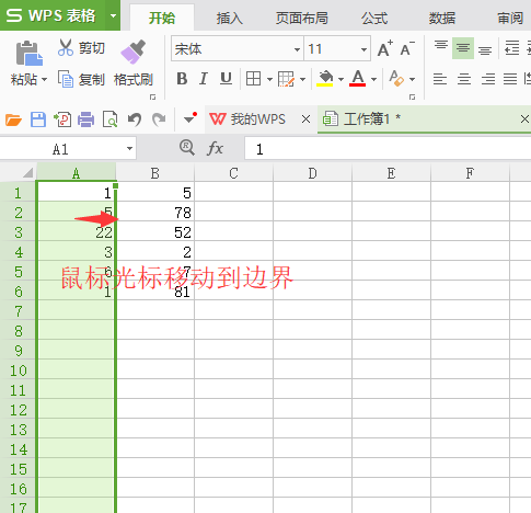 第四,然后按下鼠标左键将选中的单元列往另一列的相同边界拖动。