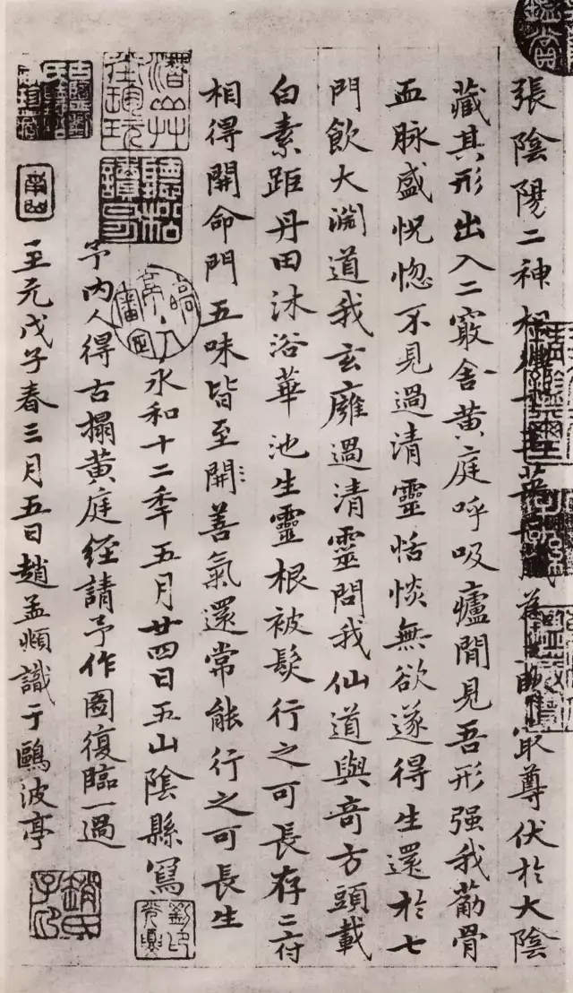 赵孟頫应夫人之请摹《黄庭经》,高清小楷书法.至元二十五年(1288)戊子春,赵孟頫时年三十五岁,回吴兴娶管道升(仲姬)为妻。三月五日,应夫人仲姬之请,摹王羲之《黄庭经》法帖。