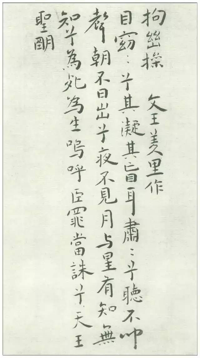 明代著名书论家王世贞认为王宠所书的《琴操》:“兼正行体,意态古雅,风韵遒逸,所谓大巧若拙,书家之上乘也。”