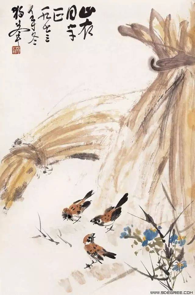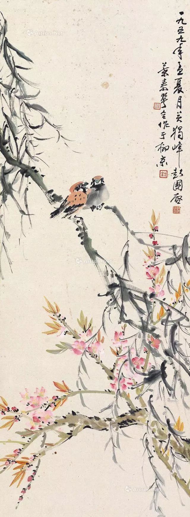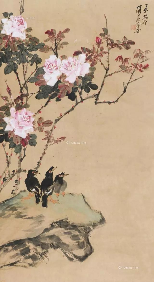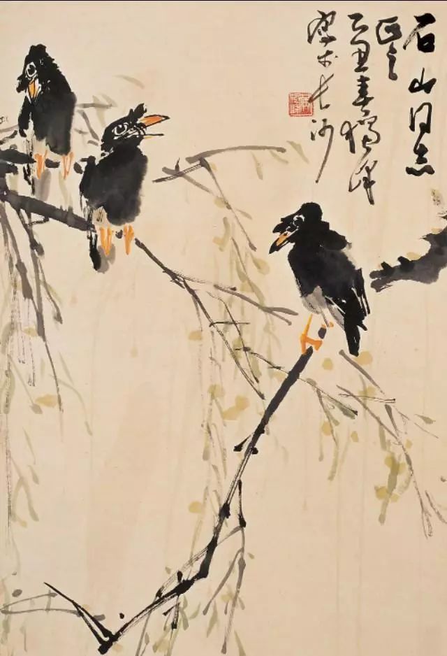 黄独峰的花鸟画笔墨遒逸雄强, 如散僧入圣,在快速的行笔过程中,还能保持笔墨的厚重,同时又充满阳刚生机之气,与自然生活之气。