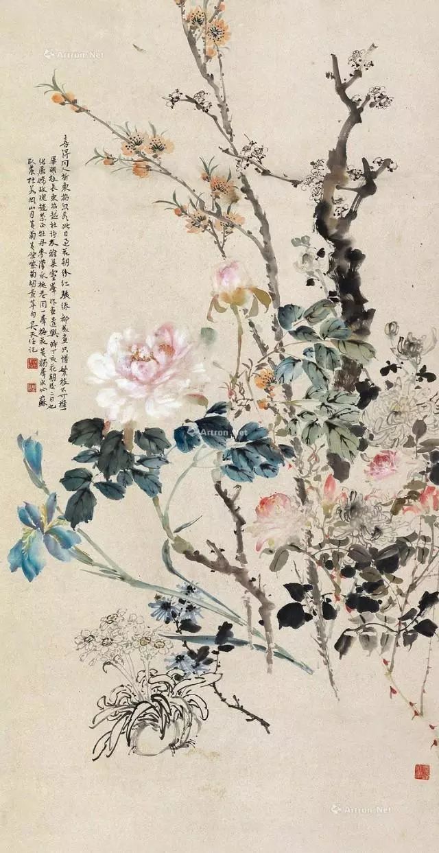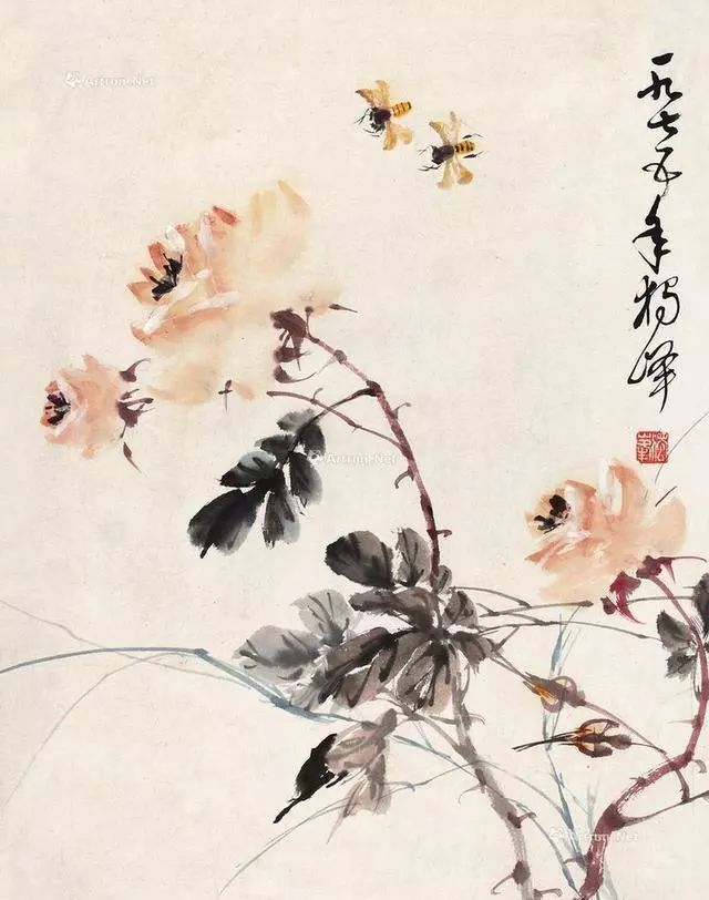 历七十年修炼熔铸,纳海派“韵”、岭南“胆”、传统“神”于一炉,遂形成中国画坛上不事雕琢、姿肆老辣、笔触犷健、个性突出独特的艺术风格。