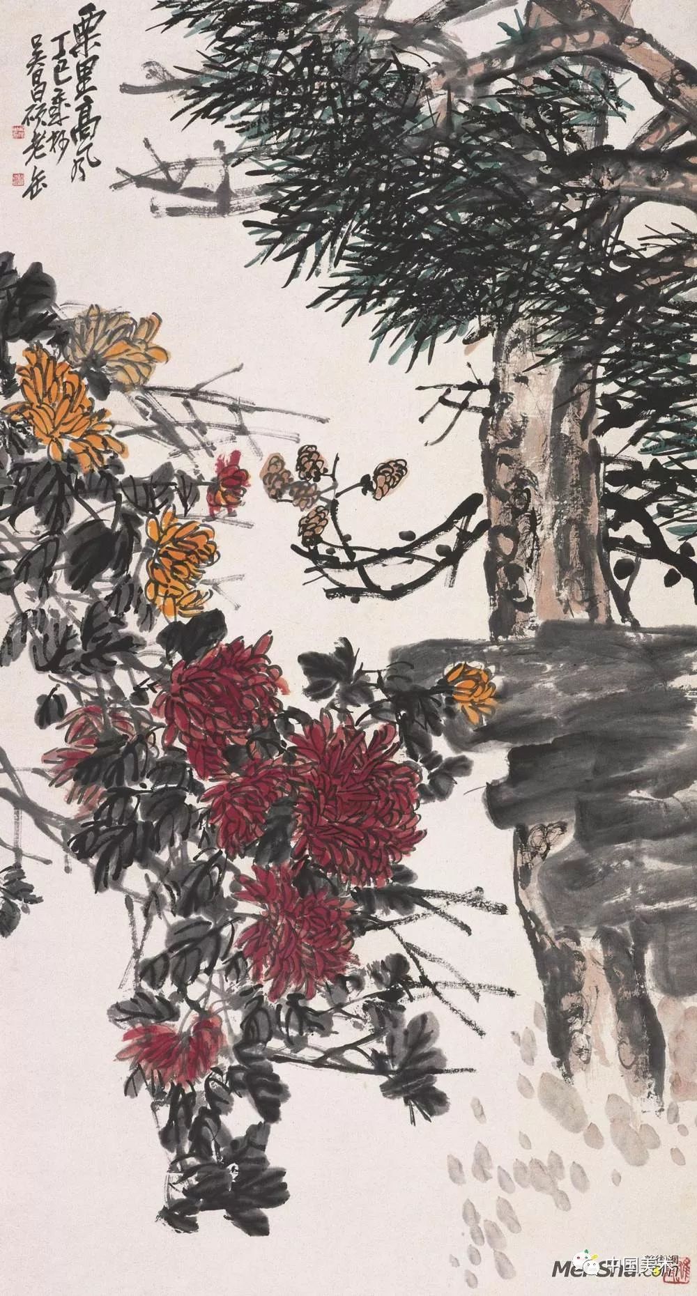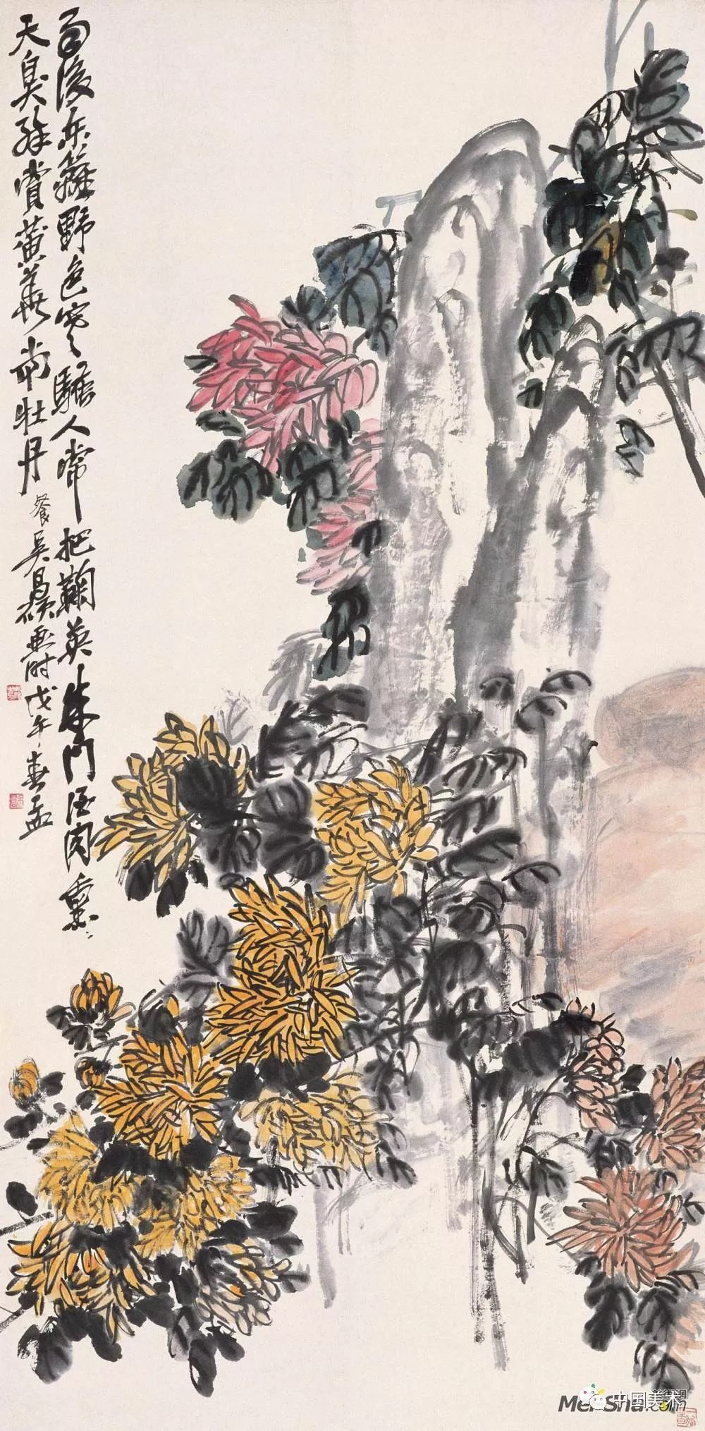 《东篱野色》 吴昌硕 1918年 136.5×67.3厘米 纸本水墨设色