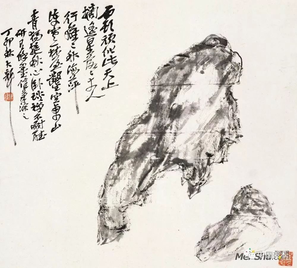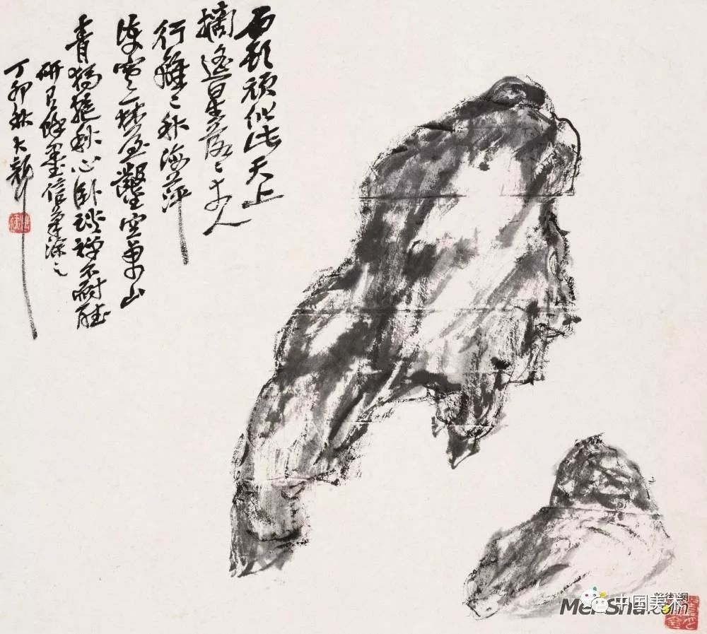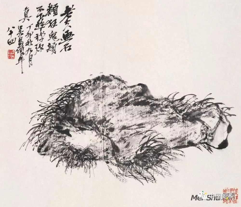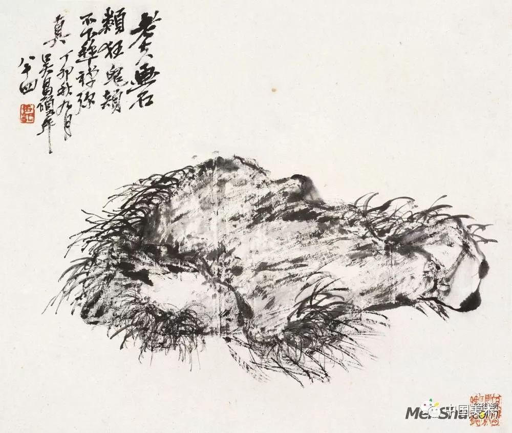《汗漫悦心册 双石》 吴昌硕 1927年 31×35×14厘米 纸本水墨设色