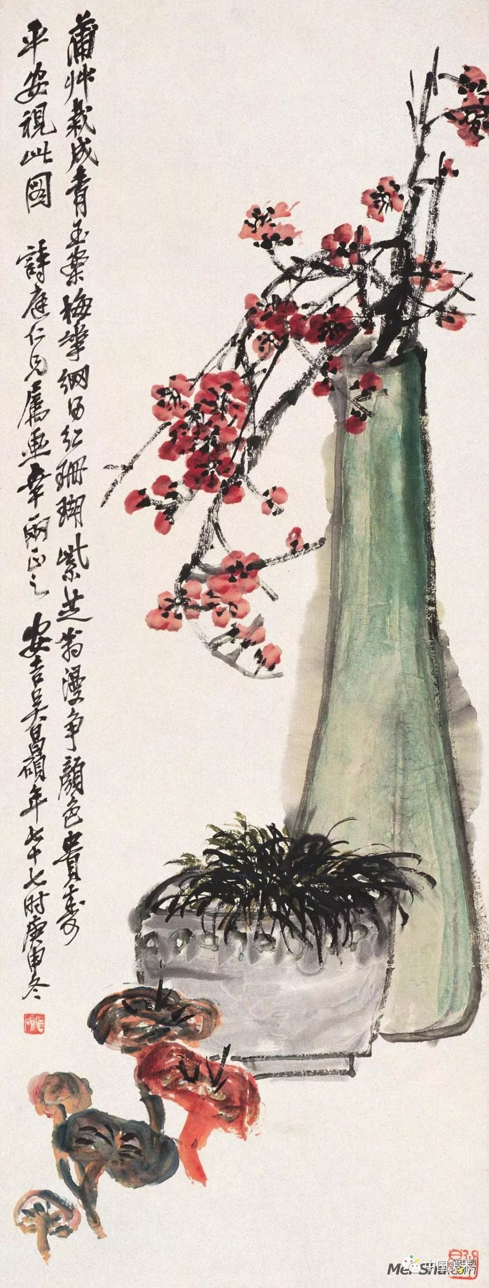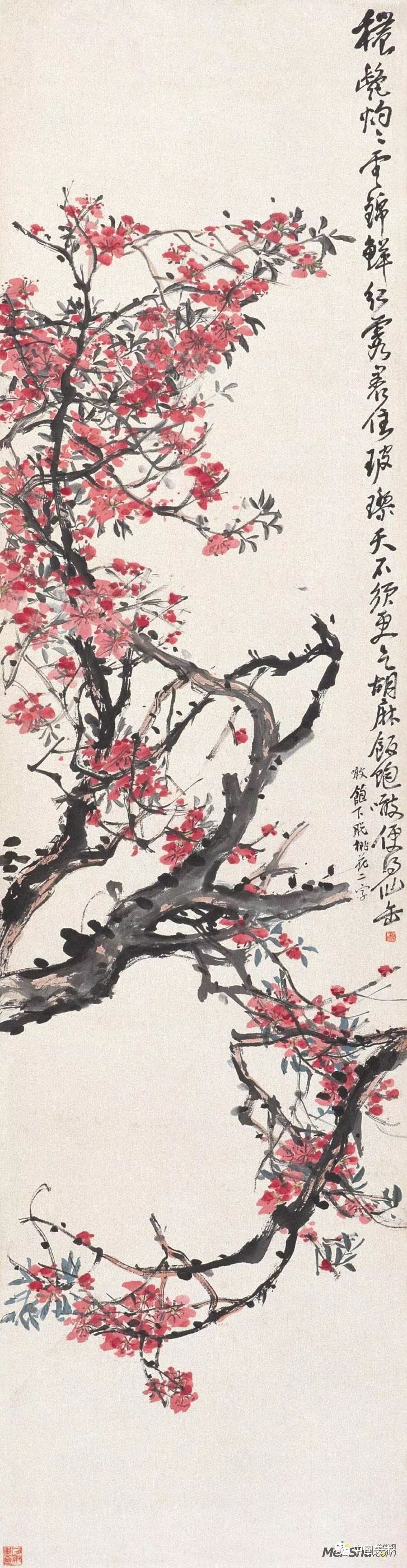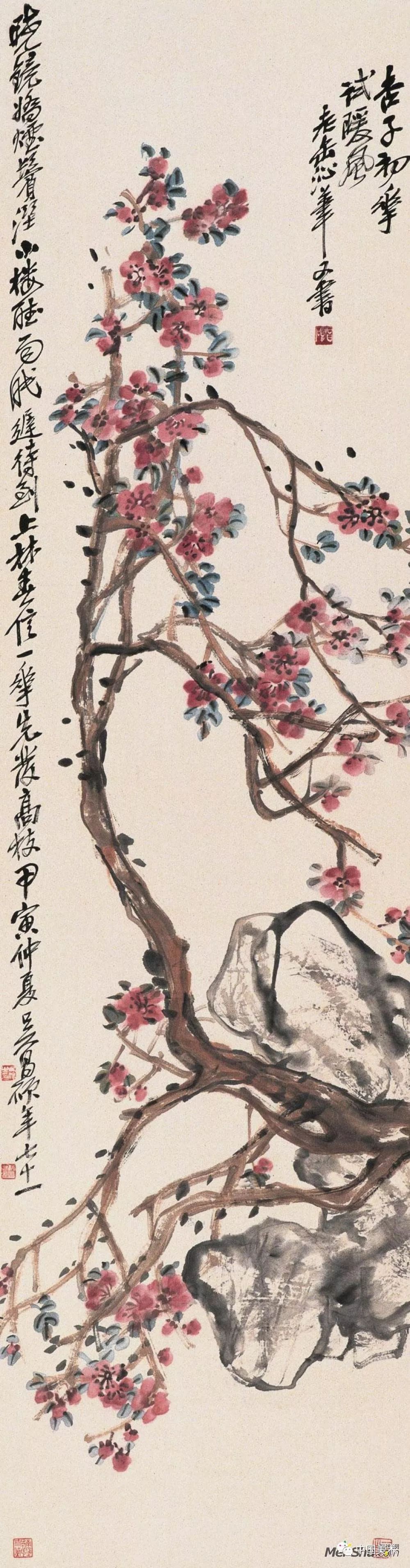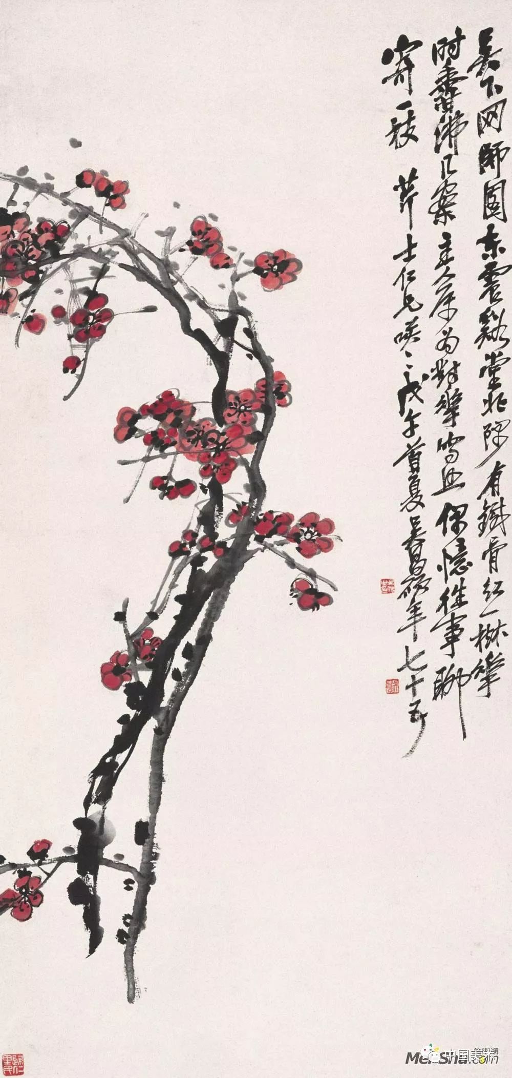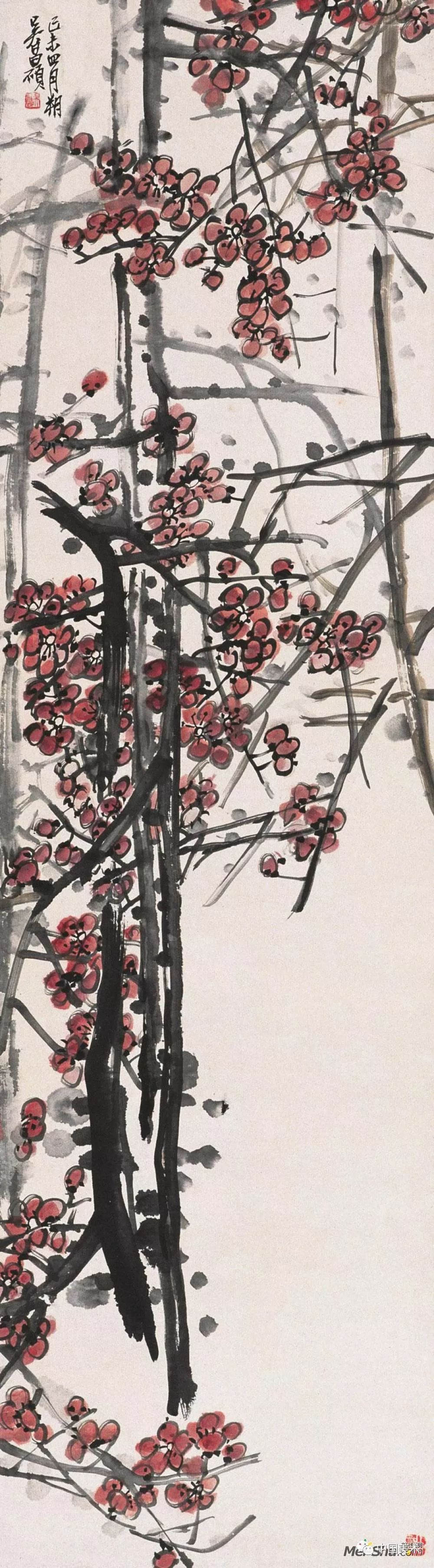 《红梅》 吴昌硕 1910年 134.8×67厘米 纸本水墨设色