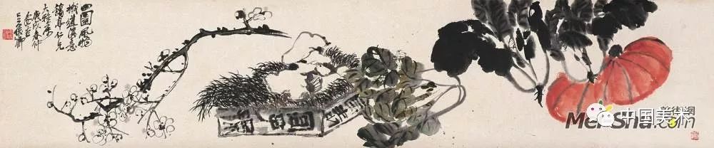《田园风物》 吴昌硕 1910年 31.8×147.7厘米 纸本水墨设色