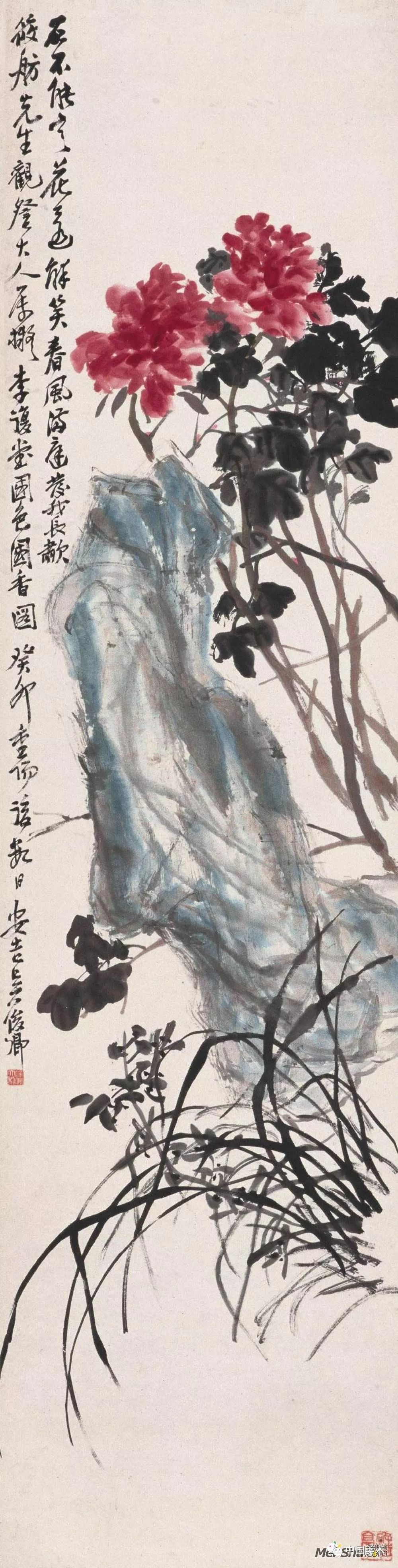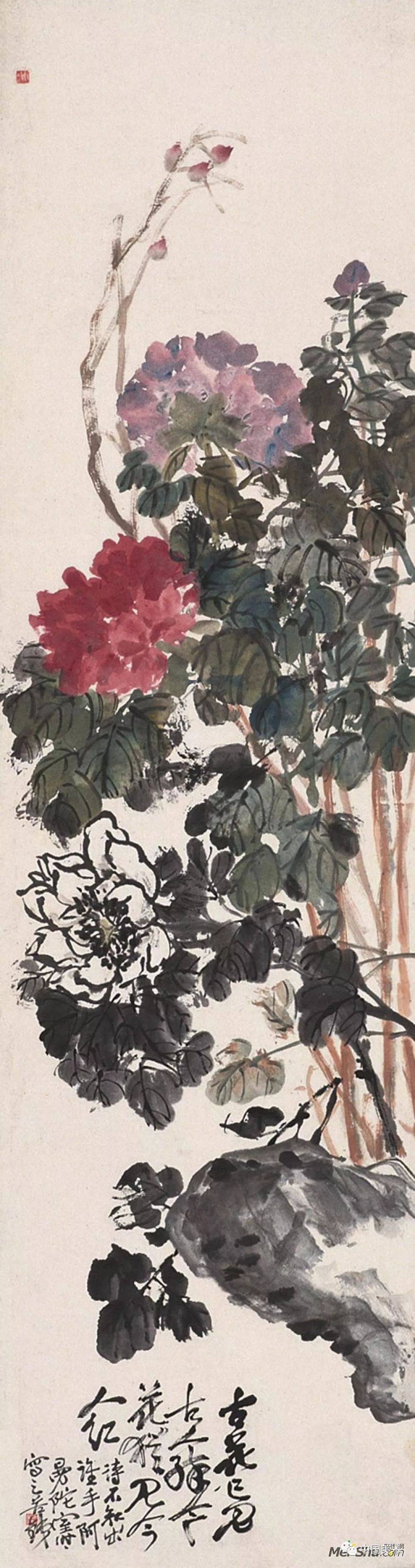 《花影流芳》 吴昌硕 1910年 89.8×47.3厘米 纸本水墨设色