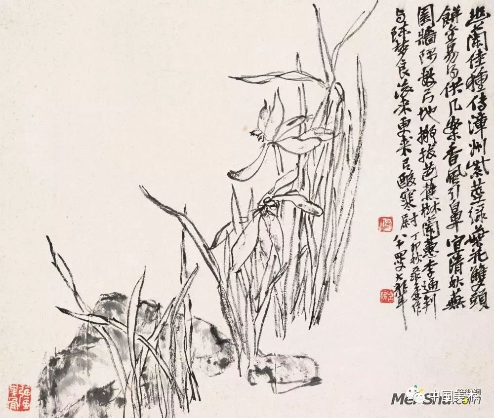 《幽兰 山水画年册十二开之五》 吴昌硕 1927年 30.8×36.2厘米 纸本水墨