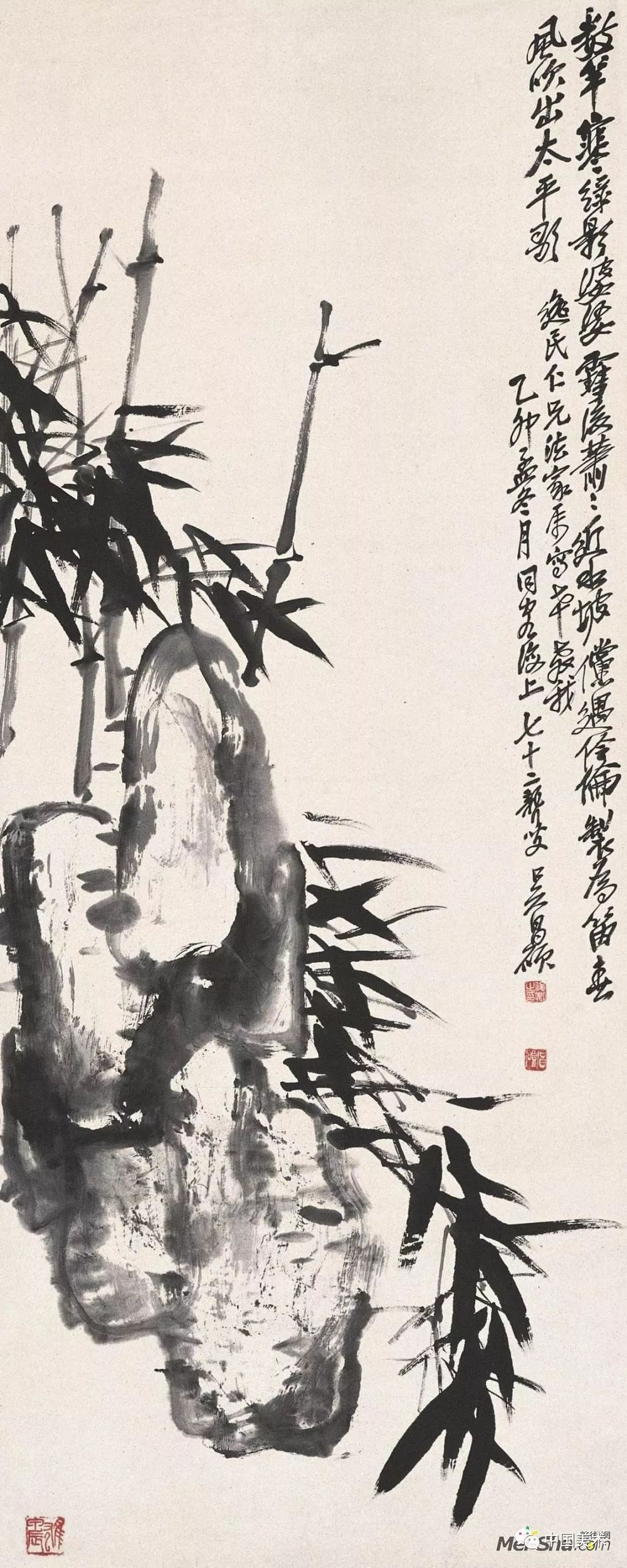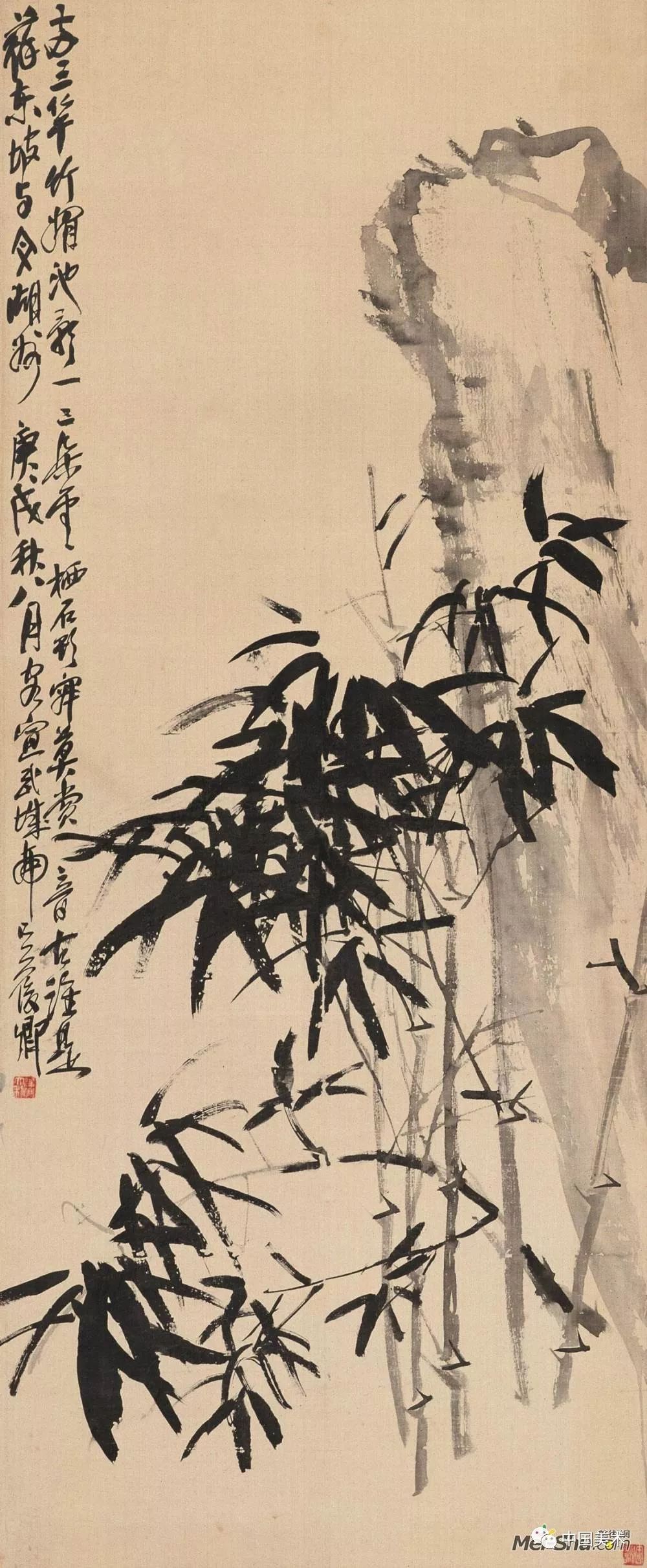 《竹影婆娑》 吴昌硕 20 代年 125.1×50.7厘米 纸本水墨