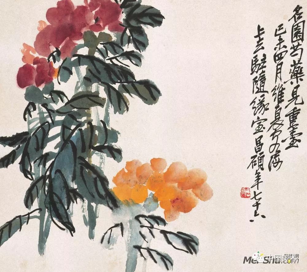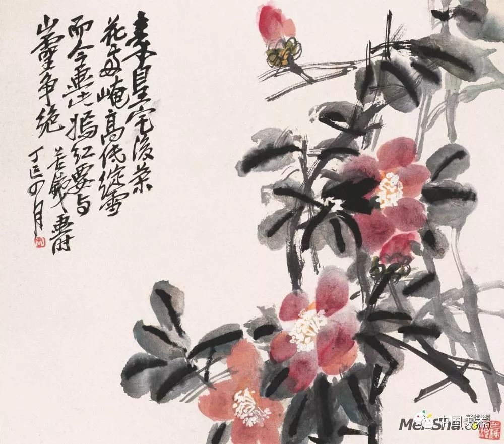 《茶花》 吴昌硕 1919年 32.7×36.9厘米 纸本水墨设色