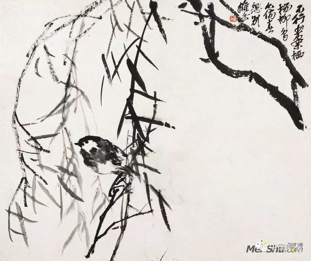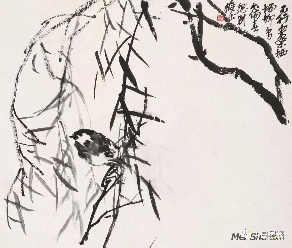 《汗漫悦心册 柳雀》 吴昌硕 1927年 31×35×15厘米 纸本水墨设色