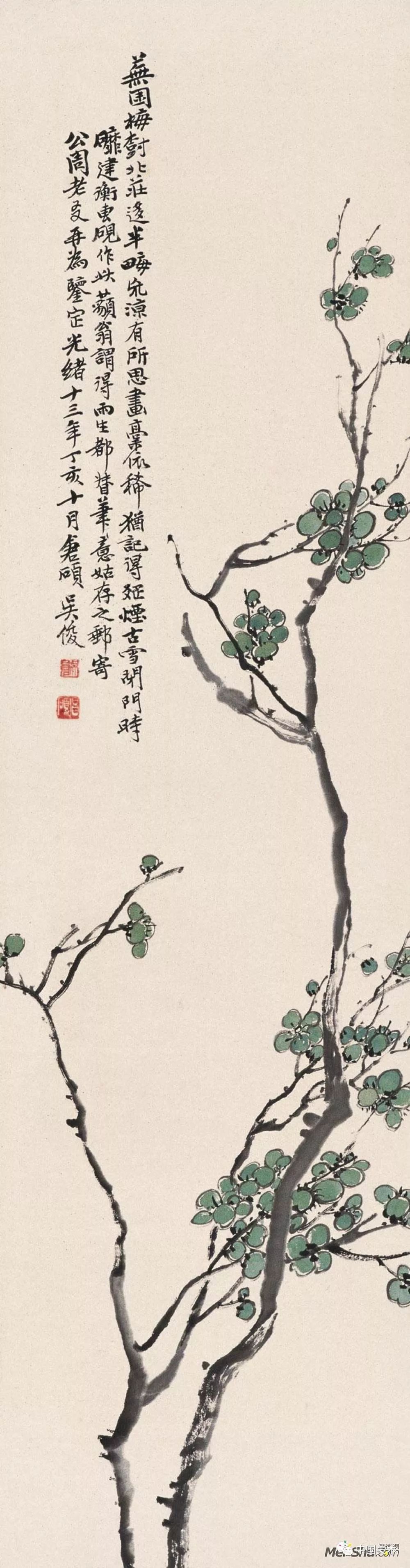 《又一邨看梅诗意》 吴昌硕 1894年 67.2×33厘米 纸本水墨