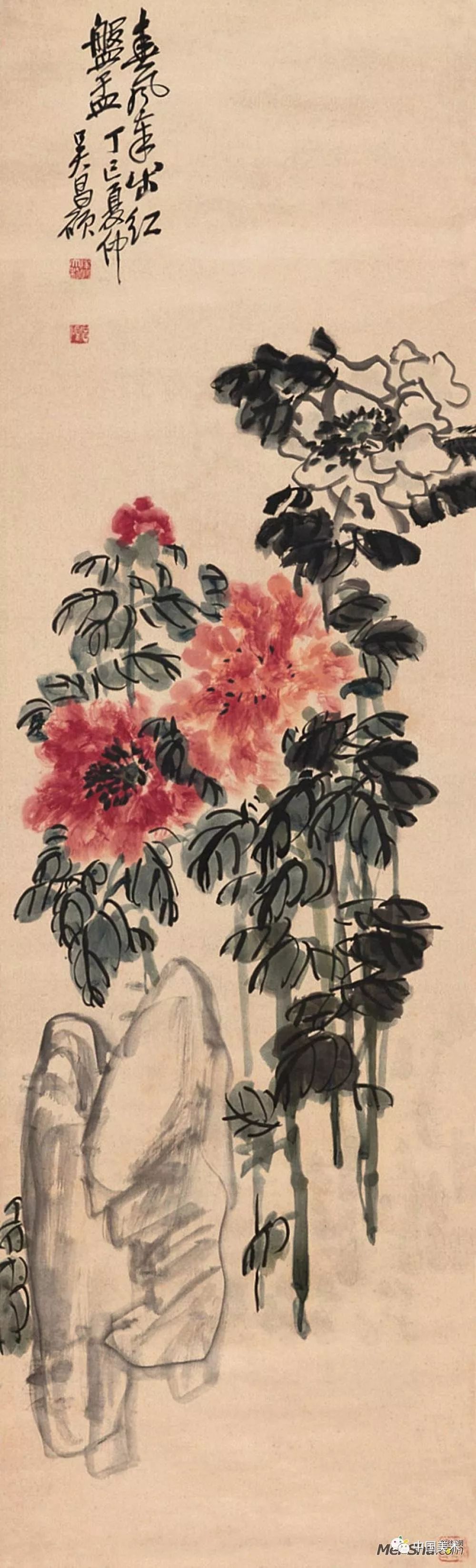《赤城霞》 吴昌硕 1910年 97.1×45厘米 纸本水墨设色