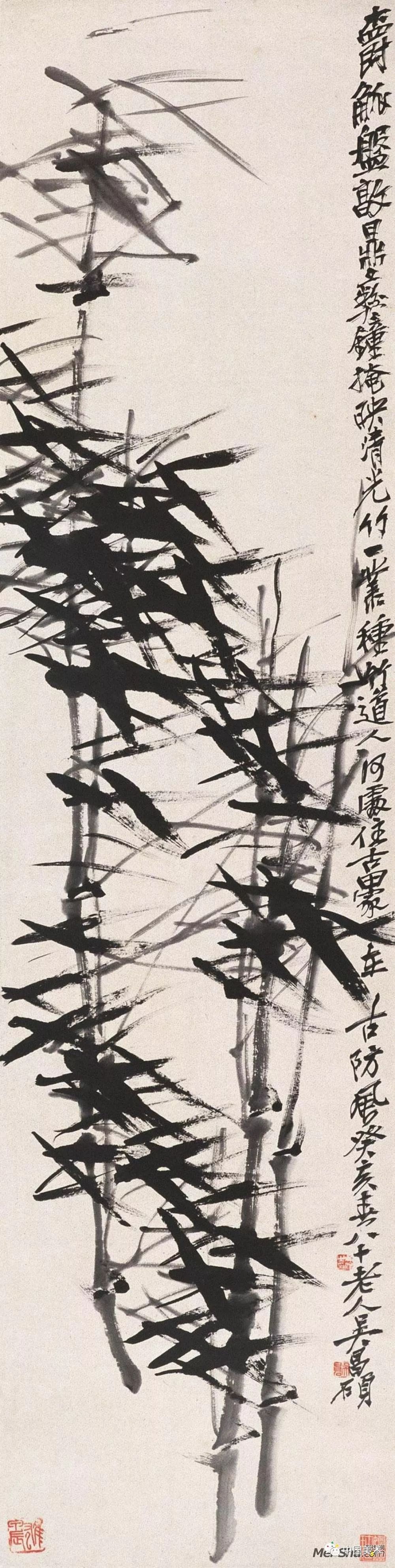 《竹影》 吴昌硕 1910年 132.7×54.5厘米 绢本水墨