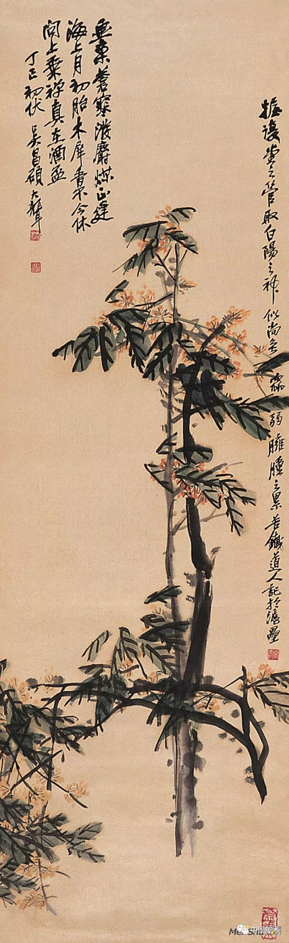 《桂花》 吴昌硕 1917年 136.1×41.7厘米 纸本水墨设色