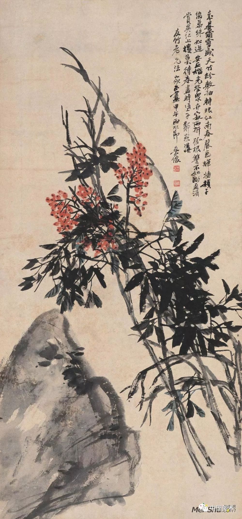 《铁骨红》 吴昌硕 1918年 107.2×51.1厘米 纸本水墨设色