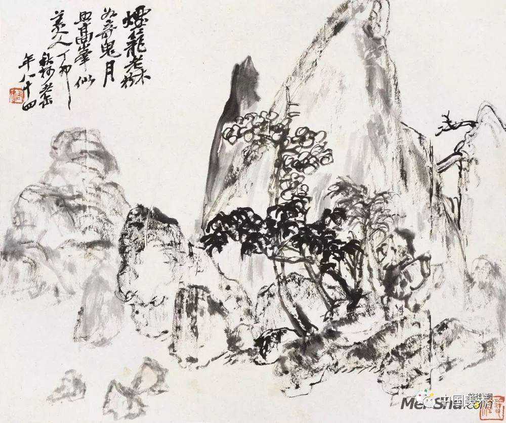 《双石 山水画年册十二开之三》 吴昌硕 1927年 31.4×35.3厘米 纸本水墨