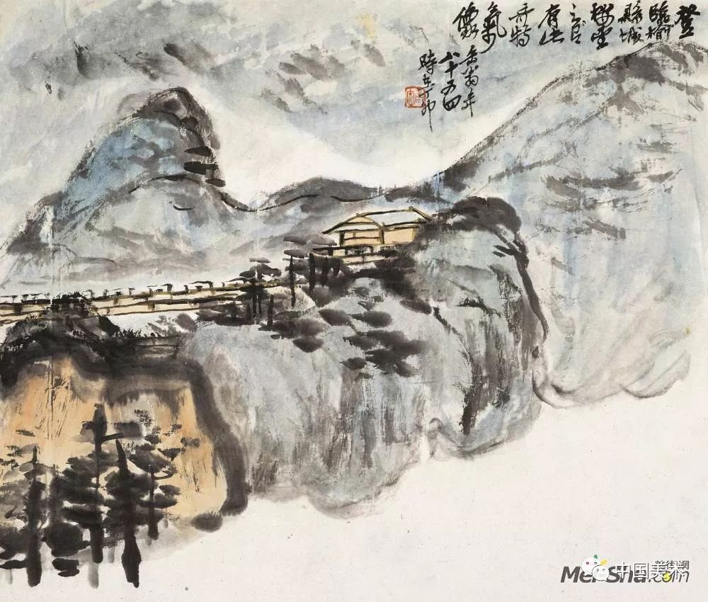 《汗漫悦心册 群峰孤塔》 吴昌硕 1927年 31×35×21厘米 纸本水墨设色