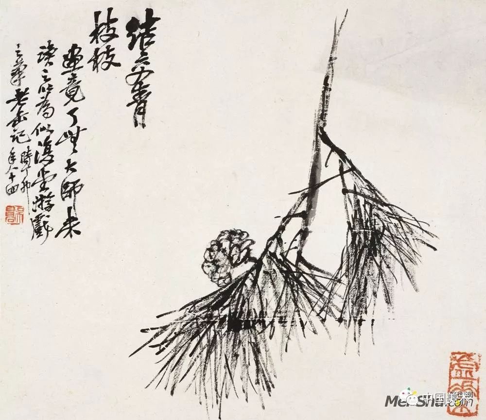 《汗漫悦心册 松枝》 吴昌硕 1927年 31×35×18厘米 纸本水墨设色