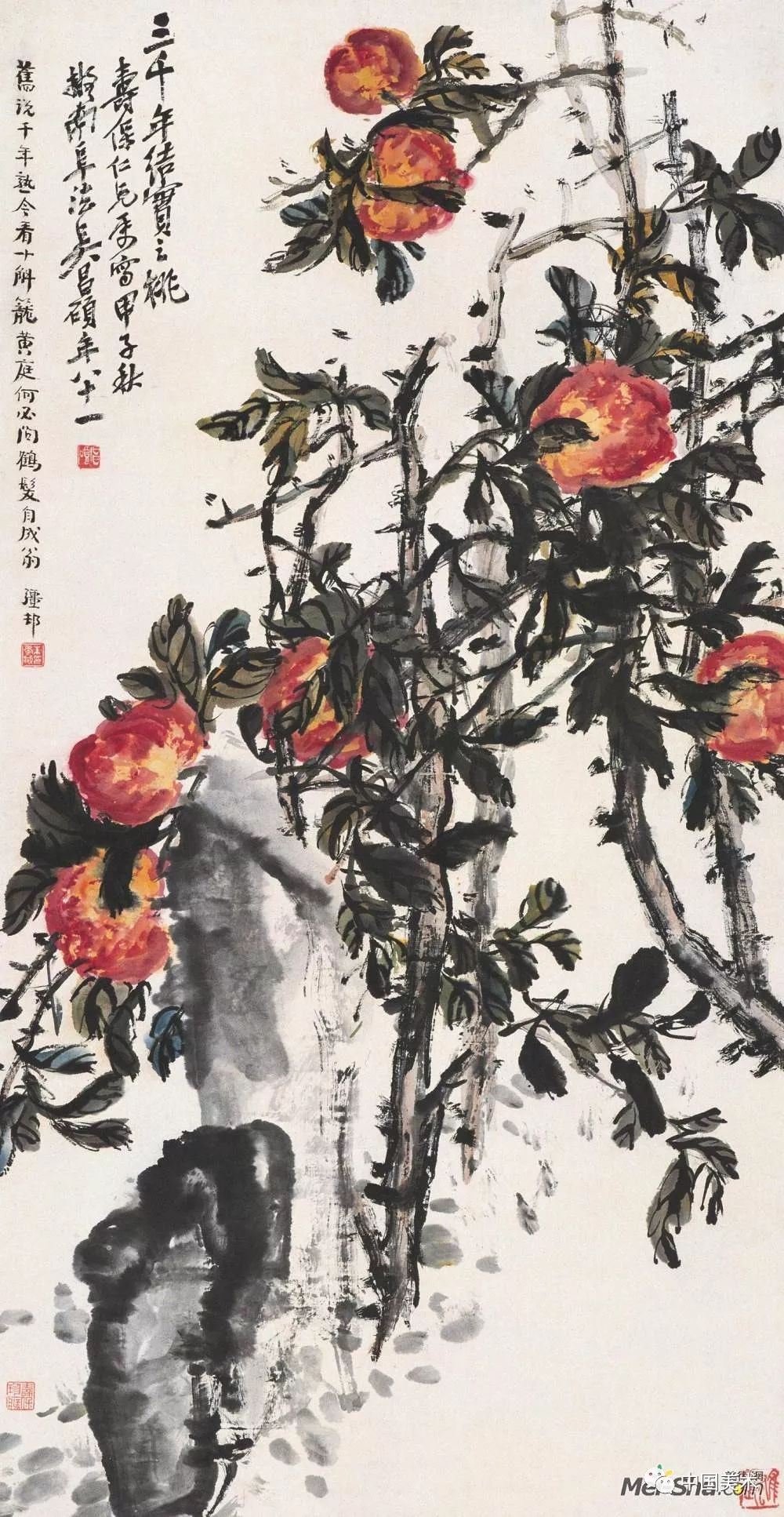 《寿桃图》 吴昌硕 1924年 111.8×58.3厘米 纸本水墨设色