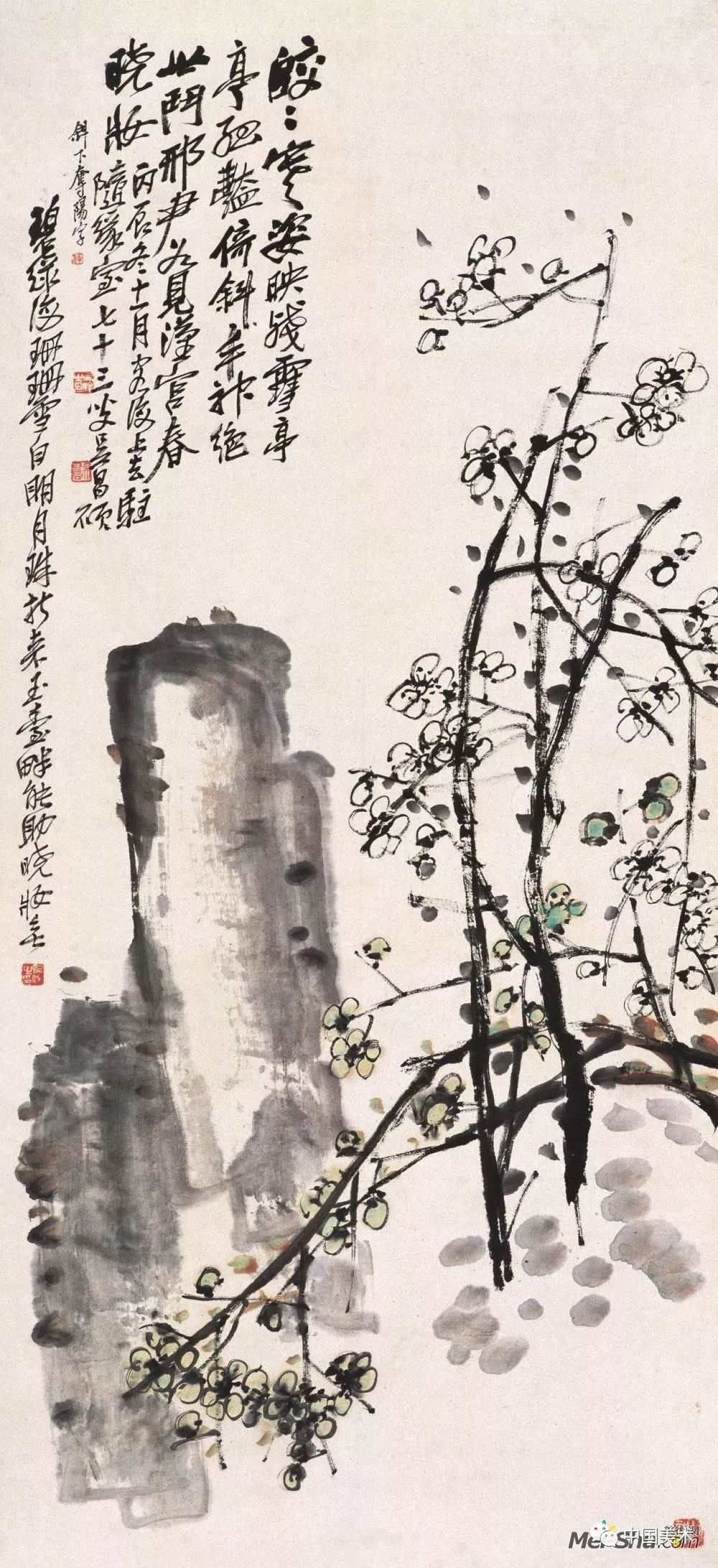 《怪石老梅》 吴昌硕 不详年 117.3×47.3厘米 纸本水墨设色