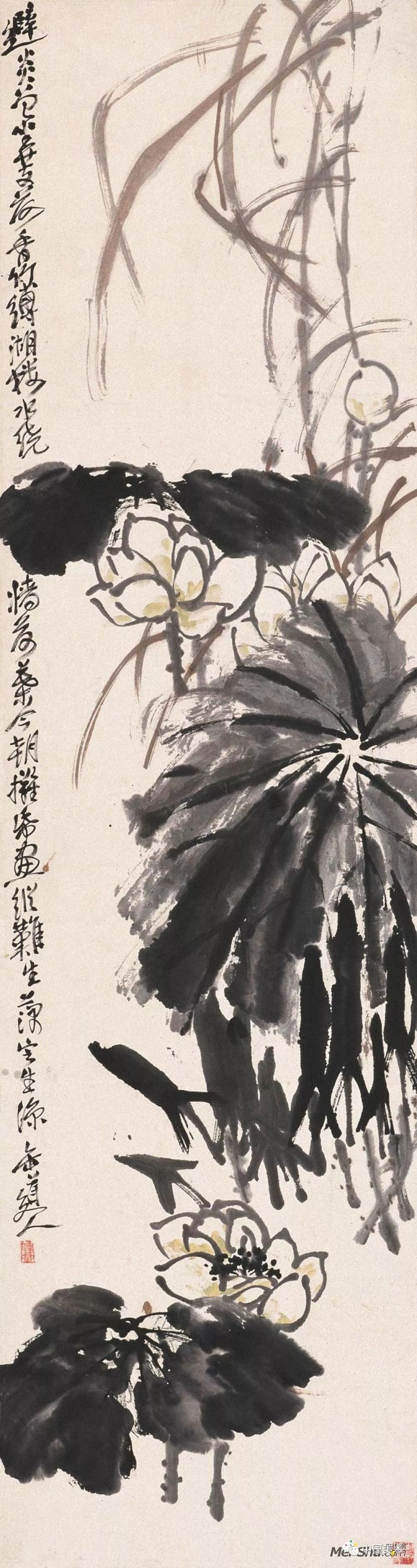 《粉白荷》 吴昌硕 1903年 159.4×79厘米 纸本水墨设色