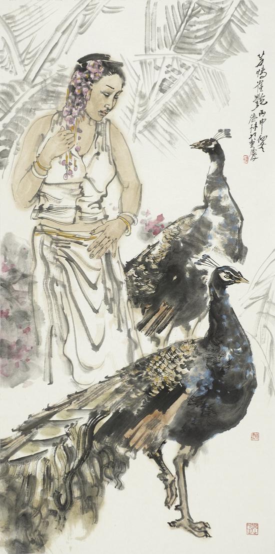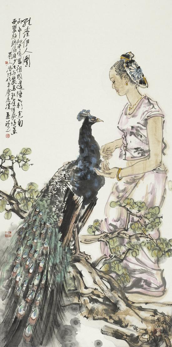 《孔雀伊人图》136x68cm 2016