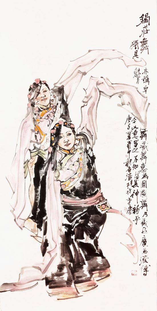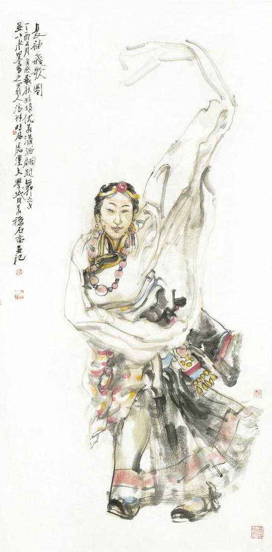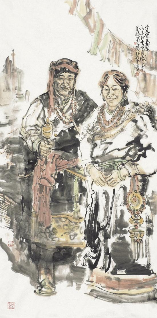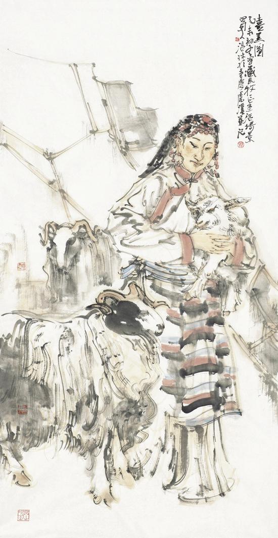 少数民族人物画古今有之,但真正的兴旺发达则是新中国成立后在民族大团结大繁荣的大环境大气候形成的,并迅速成为中国人物画一道亮丽的风景线,涌现出了黄胄、程十发等一批大师级的名家。改革开放以后,随着党的民族政策的进一步完善落实,少数民族人物画得到了空前发展,呈现出选题、画种多样,画家、佳作众多,视觉、范围广泛等艺术特点。