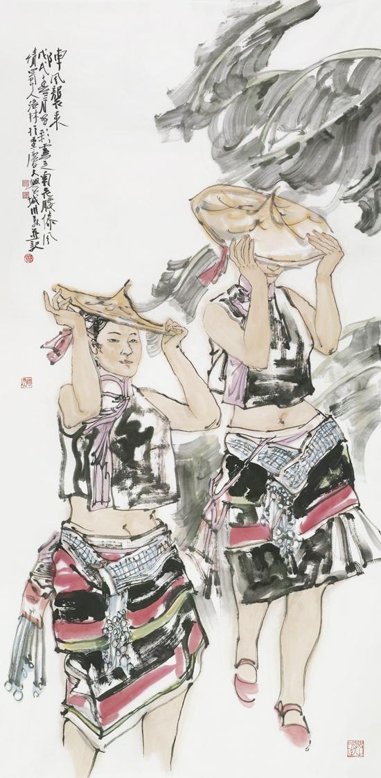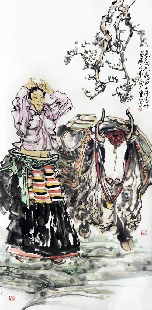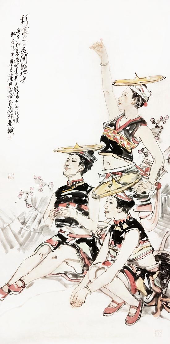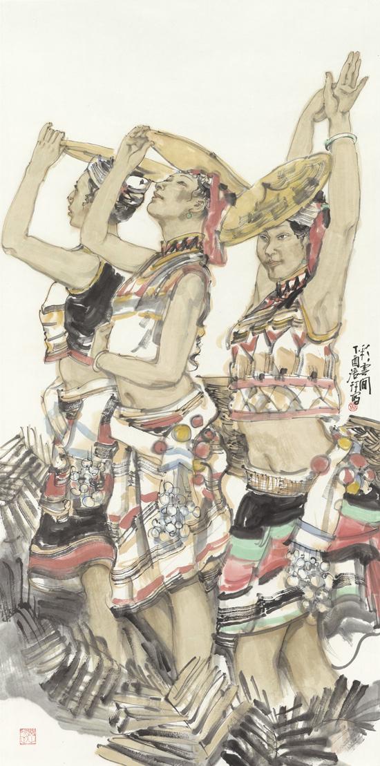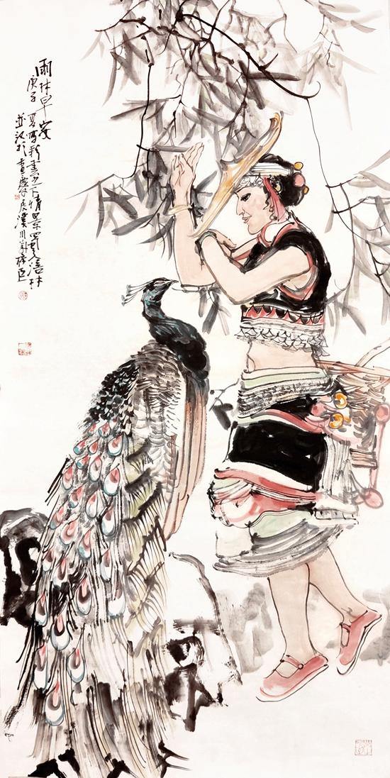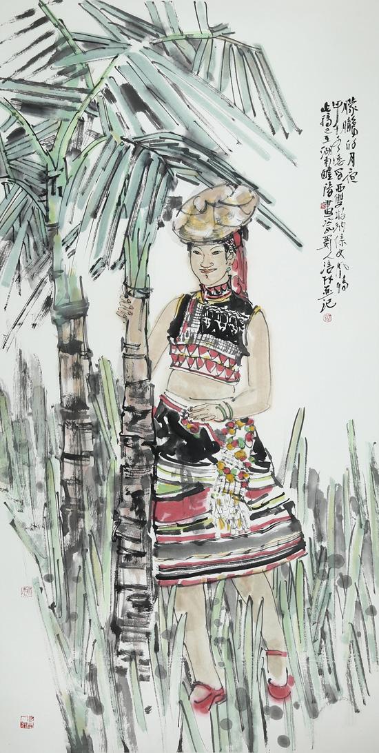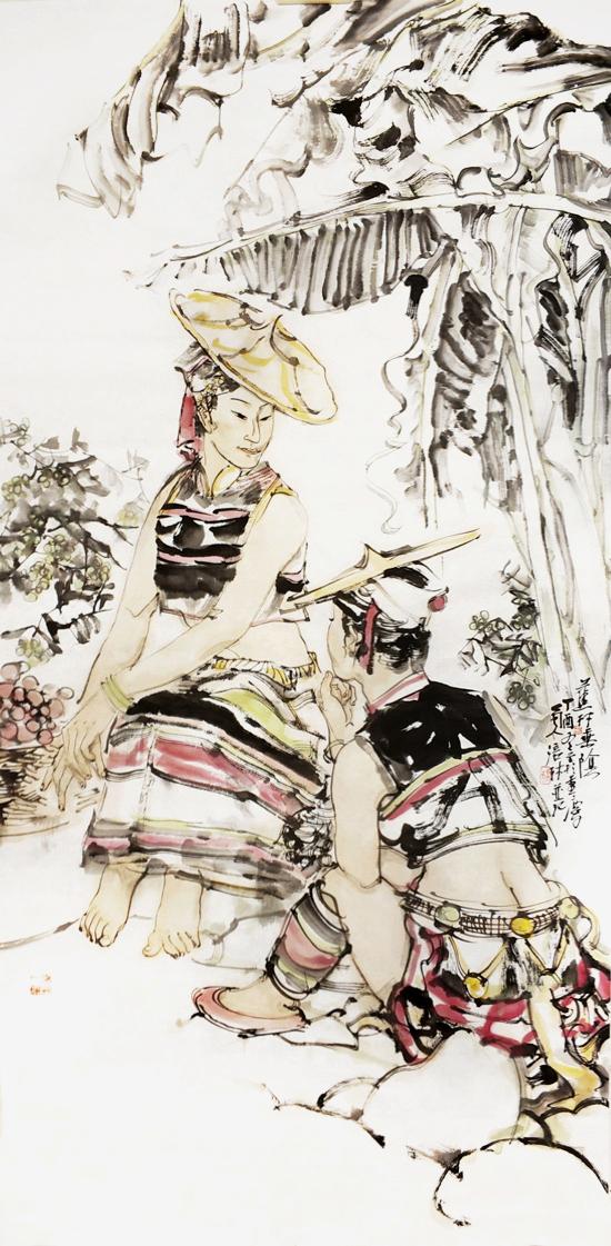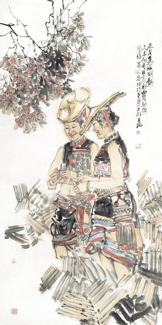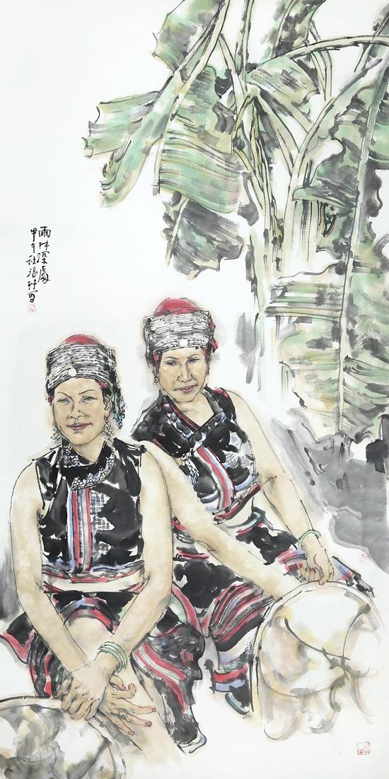 近年来,在人物画创作上风头正劲杨涪林开始有意识地把较多的笔墨投向了少数民族人物画,并在这一领域进行了全新的开掘和探索。因为有了多年人物画创作的功底和积累,杨涪林的少数民族人物画一开始就起点甚高、出手不凡。他先后创作出了《四月的澜沧江畔》等一大批少数民族人物画作品,获得了巨大的成功,其中《同心图》获得了全国第五届各民族画展金奖的,在重庆美术界刮起了一股不大不小的“最炫民族风”。