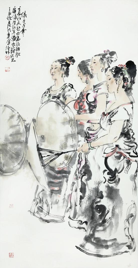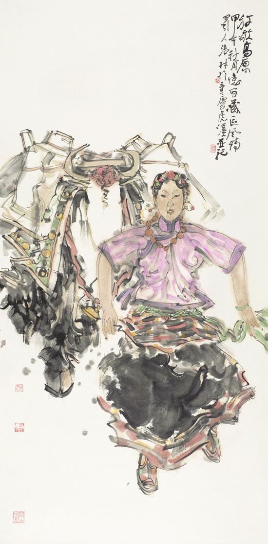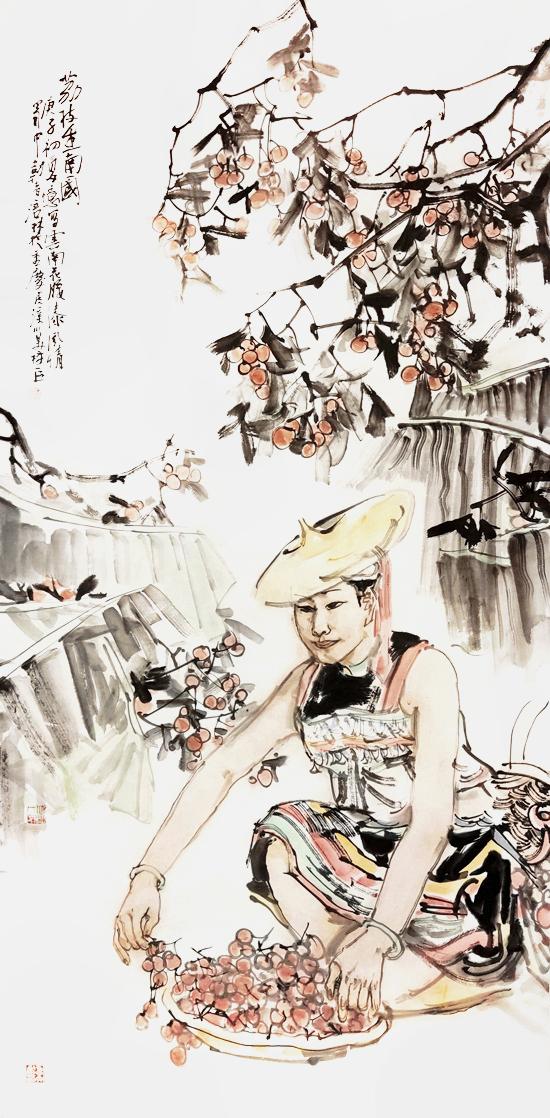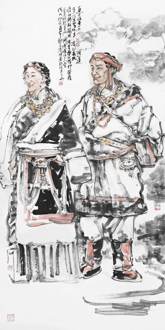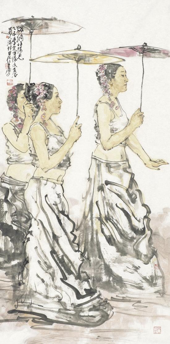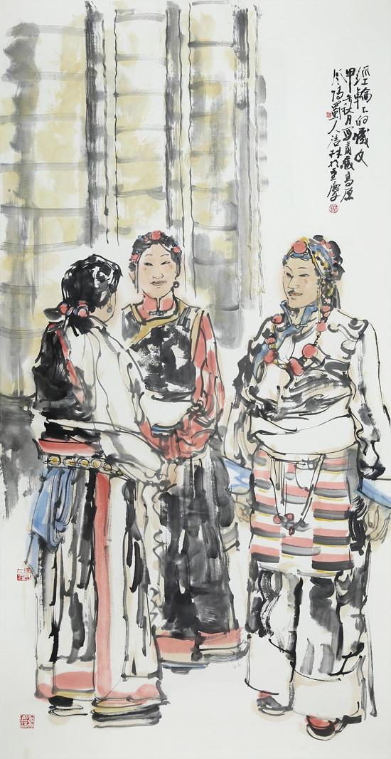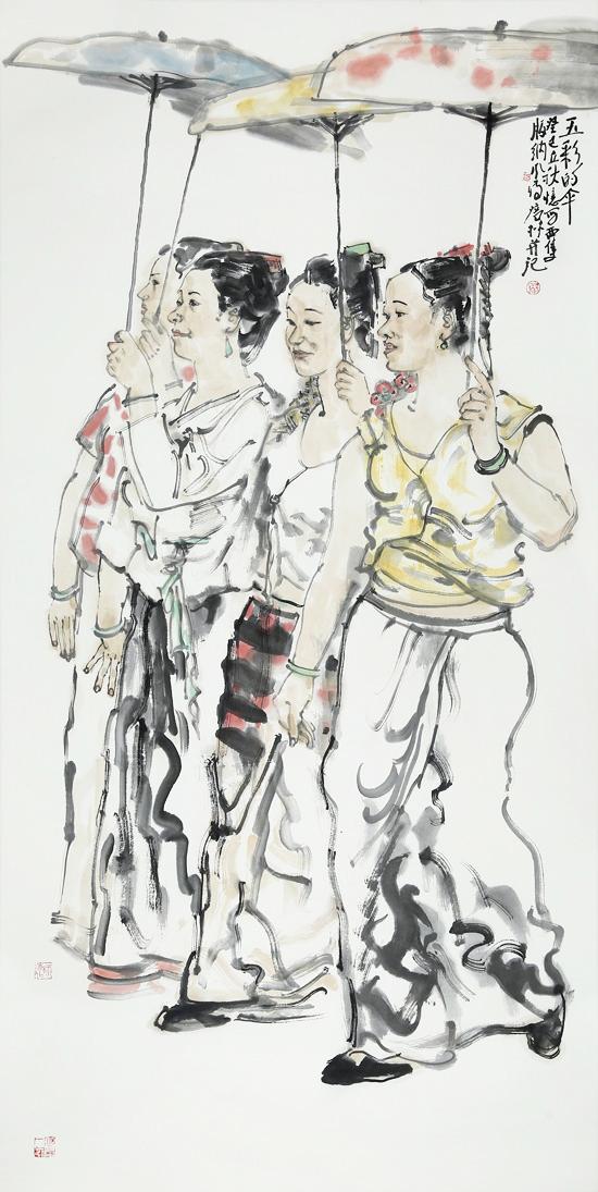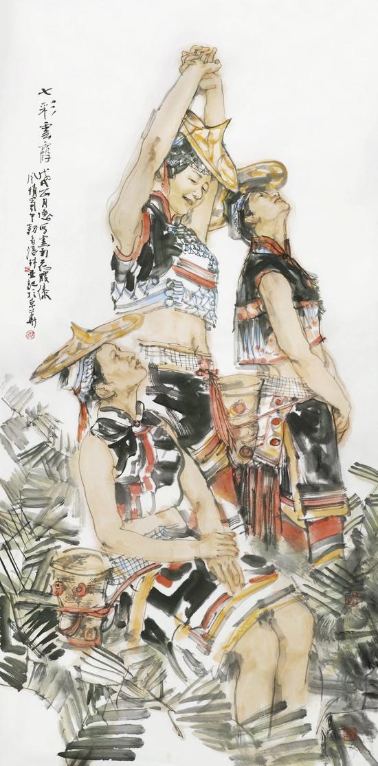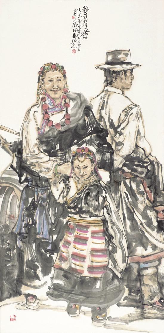 近年来,在人物画创作上风头正劲杨涪林开始有意识地把较多的笔墨投向了少数民族人物画,并在这一领域进行了全新的开掘和探索。因为有了多年人物画创作的功底和积累,杨涪林的少数民族人物画一开始就起点甚高、出手不凡。他先后创作出了《四月的澜沧江畔》等一大批少数民族人物画作品,获得了巨大的成功,其中《同心图》获得了全国第五届各民族画展金奖的,在重庆美术界刮起了一股不大不小的“最炫民族风”。