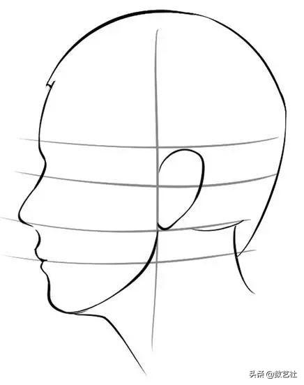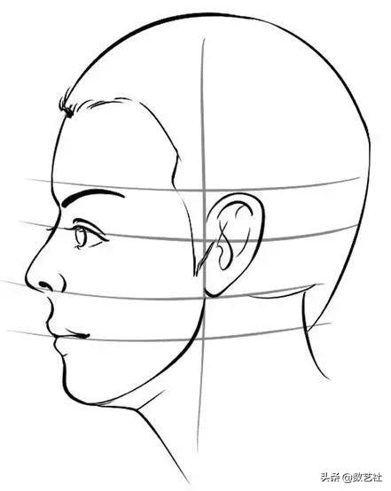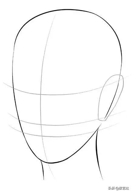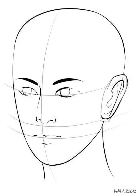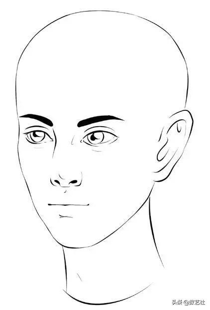 男性不同角度头面的表现虽然透视角度不同,但其绘制步骤一样,大致可分为4步。