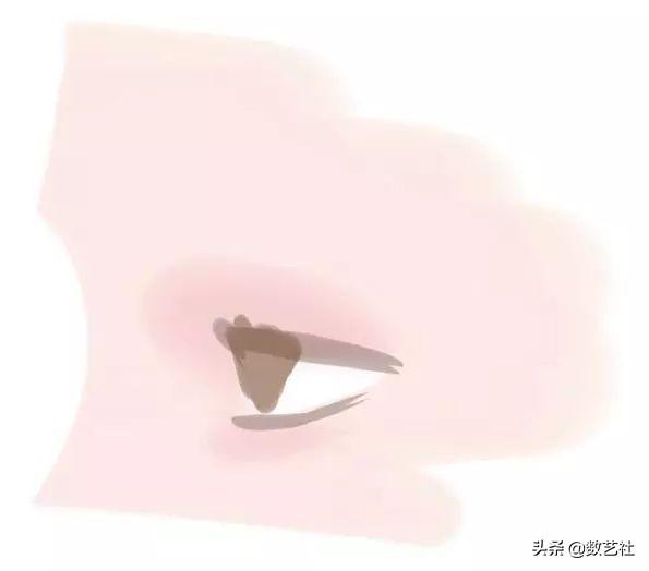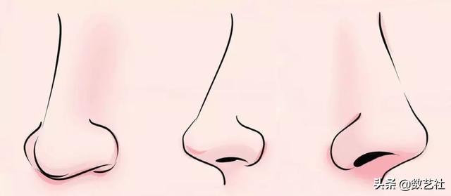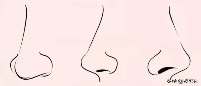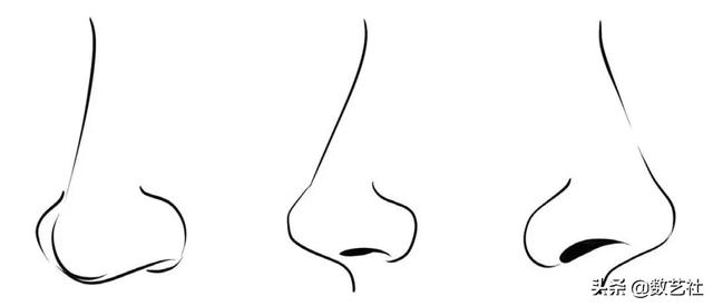 男性的鼻子直挺有型,鼻梁较高,不同角度鼻子的表现虽然透视角度不同,但其绘制步骤一样,大致可分为3步。