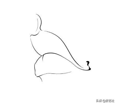 男性的嘴巴趋向扁宽形且比较饱满,不同角度嘴巴的表现虽然透视角度不同,但其绘制步骤一样,大致可分为4步。