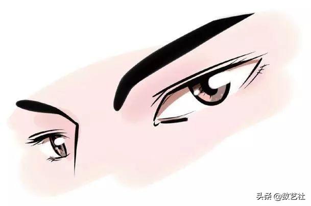 男性不同角度眼睛的表现虽然透视角度不同,但其绘制步骤一样,大致可分为3步。